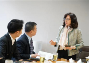 2023 年 3 月 10 日,深商总会秘书长石庆率 团 走 访 深 商 副 会 长 单 位 港 股 100 强 研 究 中 心。港股 100 强研究中心创办人劳玉仪女士 欢迎深商一行到访,她表示,作为深商会副 会长单位,港股 100 强研究中心也期待为深 商会平台链接香港、走向国际,帮助会员企 业了解香港上市政策、上市融资做出贡献。